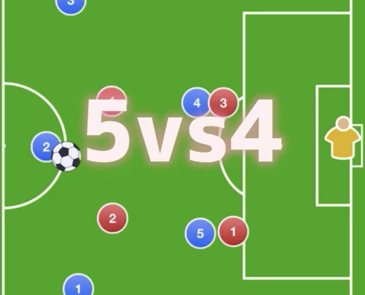 数的優位を活かす5対4 パス&コントロールScreenshot 2025.03.072025.12.15 ルール 🔵オフェンス 🔴ディフェンス 🔵は数的優位を活かして攻撃 ポイント 縦パスを入れてゴールに近付く 3人目の動き 位置的優位を意識 made by コーチボードアプリ その他のパス練習メニュー スポンサーリンク