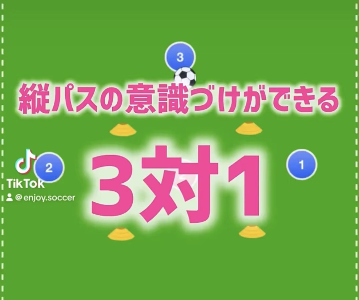 縦パスの意識づけー3対1 パス&コントロールScreenshot 2025.05.202025.12.30 ルール OFはマーカー間を通すことを目指す DFはボールを奪ったら交代できる ポイント ボールをマーカーの外側で回しつつ、縦パスを狙う ダイレクトパスを活用 made by コーチボードアプリ その他のパス&コントロール スポンサーリンク