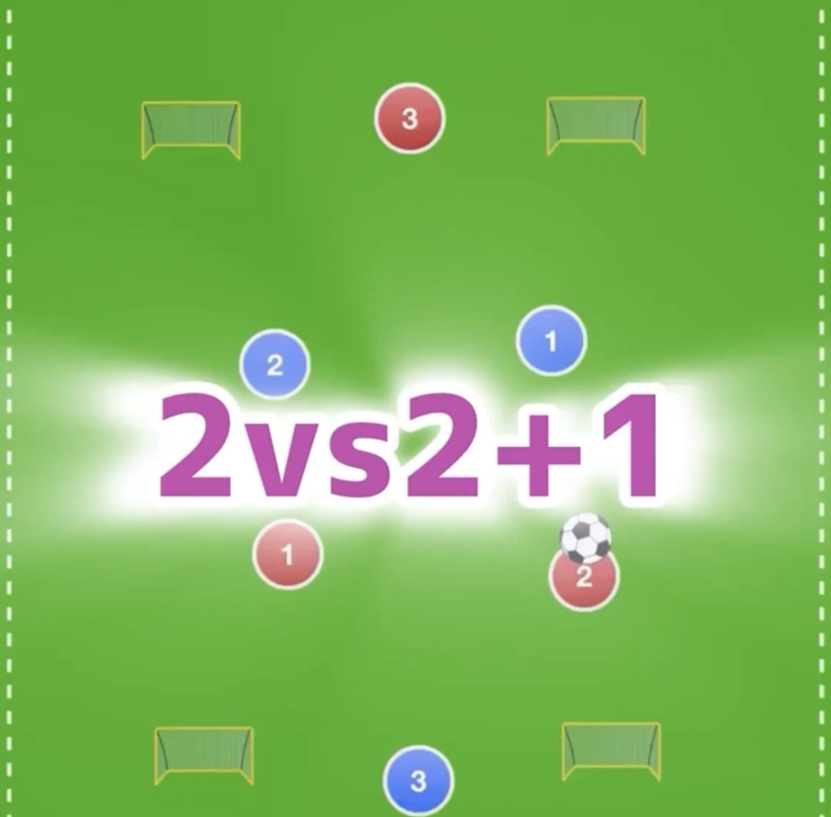 2対2+1 パス&コントロールScreenshot 2025.04.072025.12.26 ルール 🔴は上の2つのゴール、🔵は下の2つのゴールへシュート 🔴🔵それぞれの3番はサーバー。味方からの縦パスを受けてパスを供給 🔵はボールを奪ったらそのまま攻めに転じる バリエーション サーバーはダイレクトでパス サーバーを自陣ゴールの間に配置 made by コーチボードアプリ その他のパス&コントロール練習 スポンサーリンク