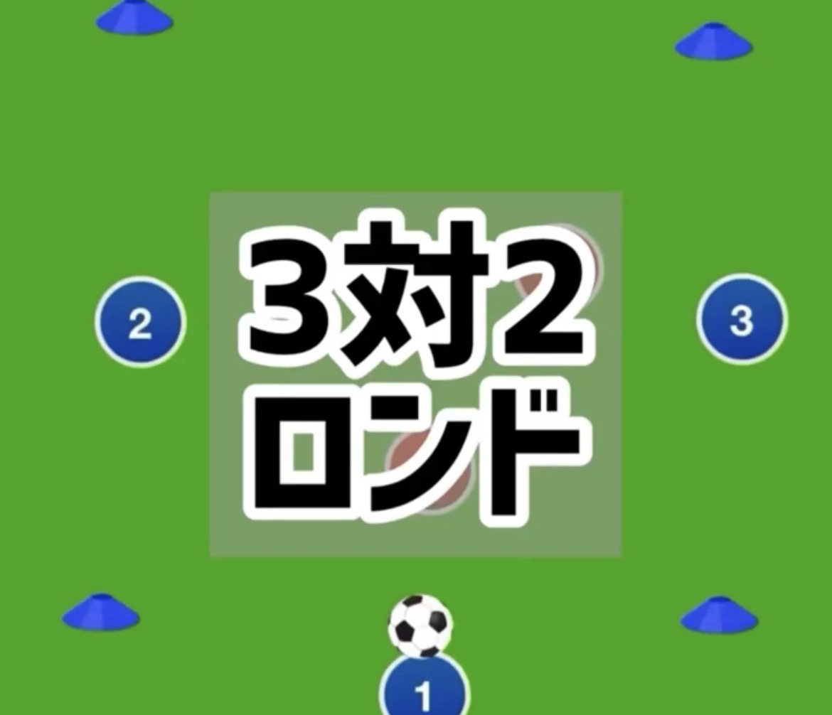 3対2ロンド パス&コントロールScreenshot 2023.06.122025.11.22 ルール 3対2でロンド タッチ制限等はなし OFの動ける範囲はボックスの中で自由 ポイント DFとの間に顔を出す動き 相手の間に立ち位置を取る 中継する動き made by コーチボードアプリ その他のパス&コントロール練習 スポンサーリンク