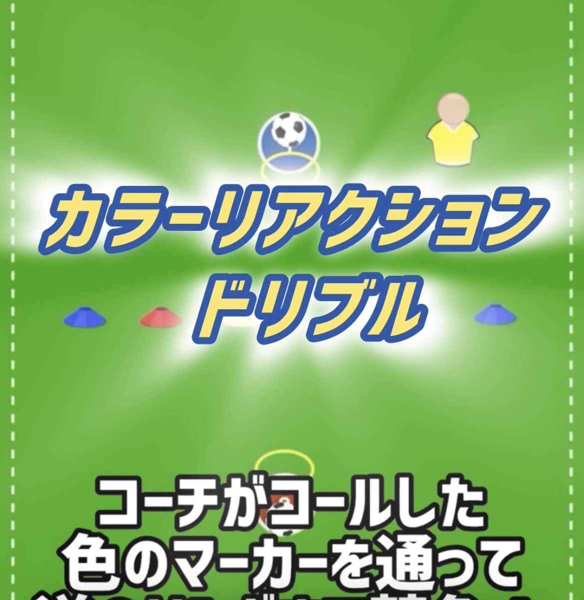 カラーリアクションドリブルバトル ドリブルScreenshot 2023.08.202025.12.10 ルール コーチが色をコール コールされた色のマーカーを通って逆のリングまで競争 先にリングに辿り着いた方の勝利 バリエーション 色を番号や物にに置き換える(赤は1番青は2番等) 反対回りにする made by コーチボードアプリ その他のドリブル練習 スポンサーリンク